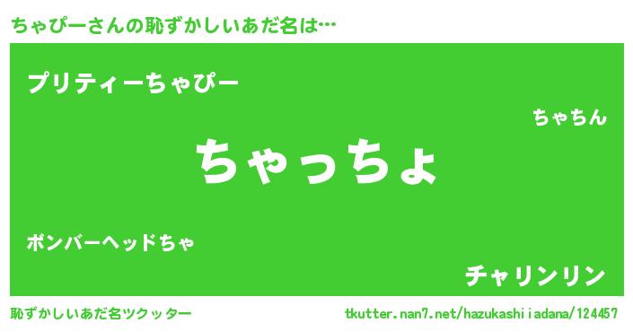 | ヒーロー風カッコイイあだ名 | 『ウルトラちゃぴーマン』『仮面チャダー』 |