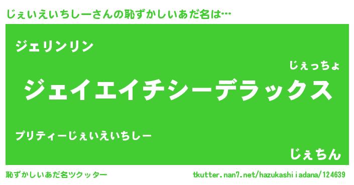| 意味不明あだ名 | 『自称じぇいえいちしー』 |