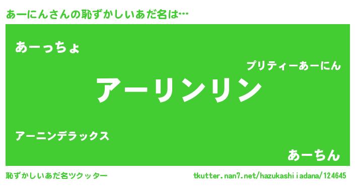| ヒーロー風カッコイイあだ名 | 『炎刃騎士アー』『ウルトラあーにんマン』 |