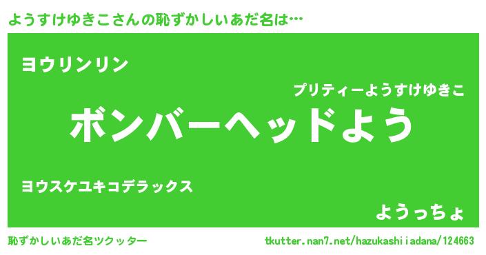 | 欧米人風あだ名 | 『ダニエルようすけゆきこ』 |