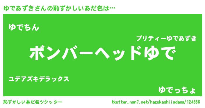| ヒーロー風カッコイイあだ名 | 『慈愛の使者ゆであずき』『仮面ユデダー』 |