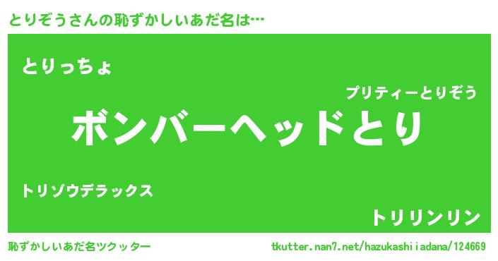 | 欧米人風あだ名 | 『ダニエルとりぞう』『ウサインとりぞう』 |