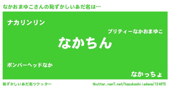 | ヘコむあだ名 | 『なかおまゆこ(苦笑)』『なかお』 |