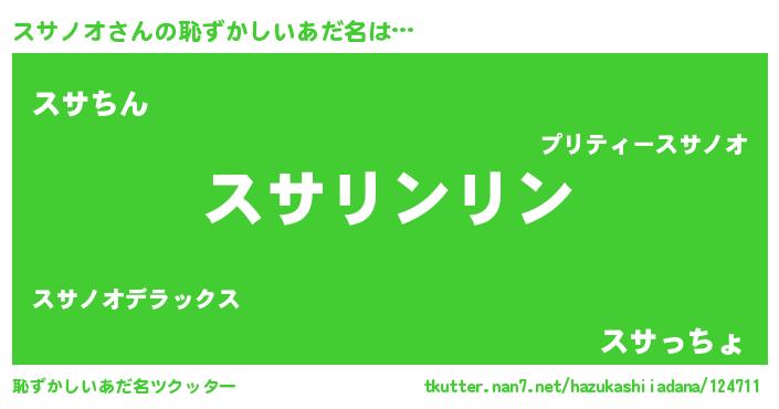 | ヘコむあだ名 | 『スサっ子』『スサノオ(苦笑)』 |