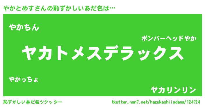 | 意味不明あだ名 | 『自称やかとめす』『永久保存やかとめす』 |