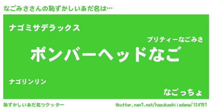 | ヘコむあだ名 | 『豆乳』『なごふぇ~』『なごっぺ』 |