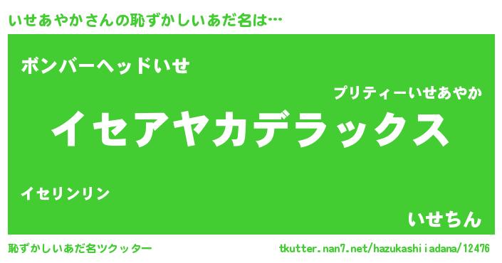 | ヘコむあだ名 | 『いせあやか(爆)』『いせもー』 |