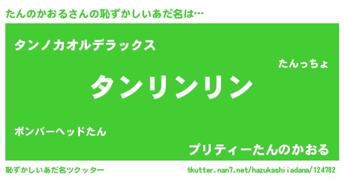 | 男性向けラノベタイトル風あだ名 | 『たんのかおるの嫁は女の子じゃないと思った?』 |