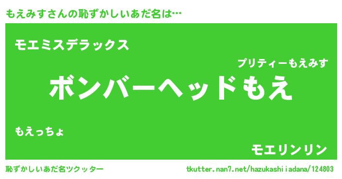| ヘコむあだ名 | 『もえお』『もえっふぃ~』 |