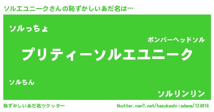 | ポケモン風あだ名 | 『ソルチュウ』『ソルエダネ』 |