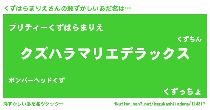 | 意味不明あだ名 | 『自称くずはらまりえ』 |
