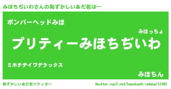 | ヘコむあだ名 | 『みほにゅー』『みほちぢいわ(震え声)』 |