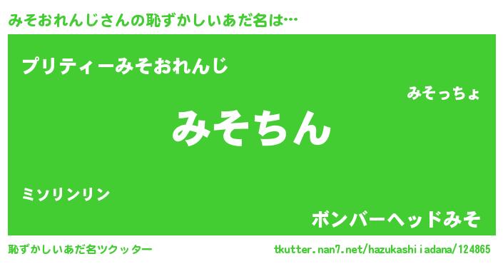 | ヒーロー風カッコイイあだ名 | 『ネオミソオレンジ』『仮面ミソダー』 |