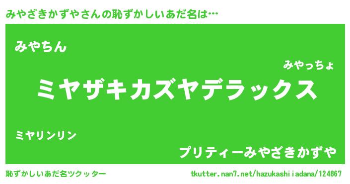 | ヘコむあだ名 | 『みやざきかずや(爆)』『みやもー』 |