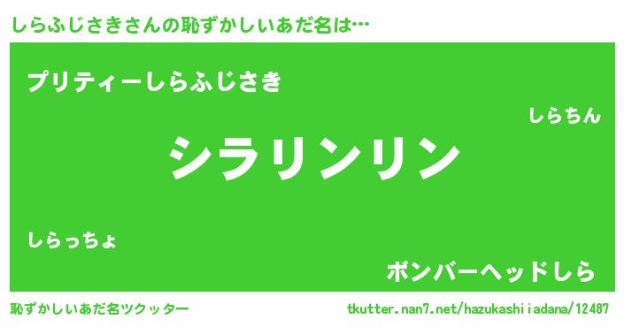 | 意味不明あだ名 | 『とにかく怪しいしらふじさき』 |