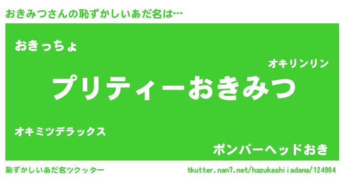 | ヘコむあだ名 | 『おきもー』『つくし』『おきを』 |