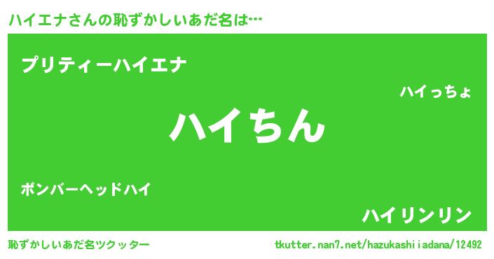 | 可愛いあだ名 | 『ハイエナママ』『ハんハん』 |