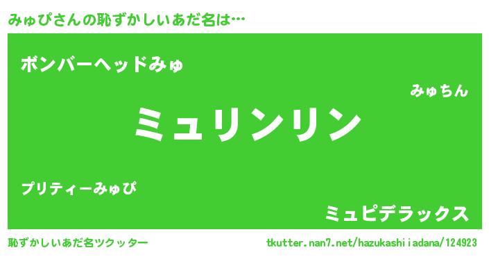 | 意味不明あだ名 | 『とにかく怪しいみゅぴ』『自称みゅぴ』 |