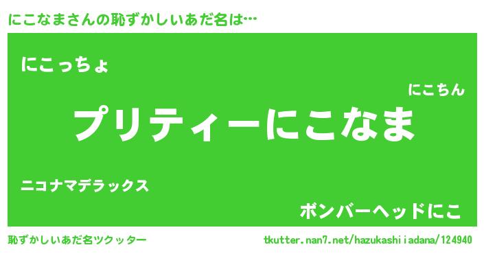 | ヒーロー風カッコイイあだ名 | 『スーパーニコナマ』『仮面ニコダー』 |