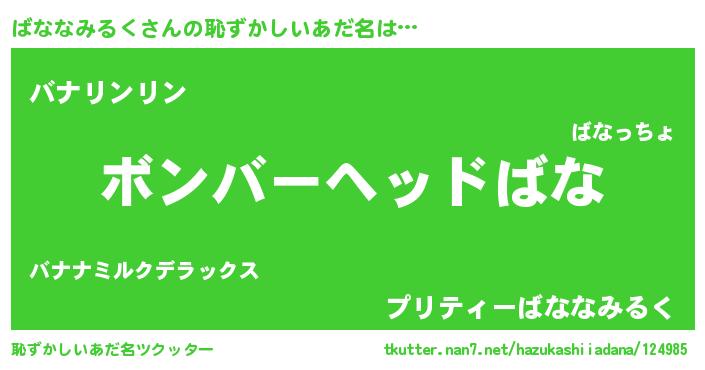 | ヒーロー風カッコイイあだ名 | 『愛の使者ばななみるく』『魔戒騎士バナ』 |