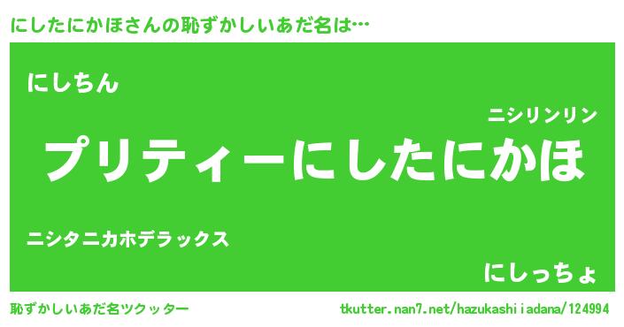 | ヘコむあだ名 | 『にしにゅー』『にしたにかほ(苦笑)』 |