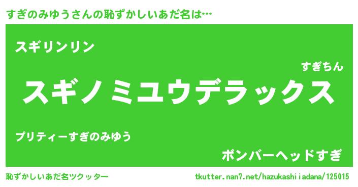 | 意味不明あだ名 | 『自称すぎのみゆう』 |