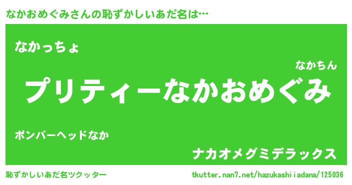 | ヒーロー風カッコイイあだ名 | 『スーパーナカオメグミ』『仮面ナカダー』 |