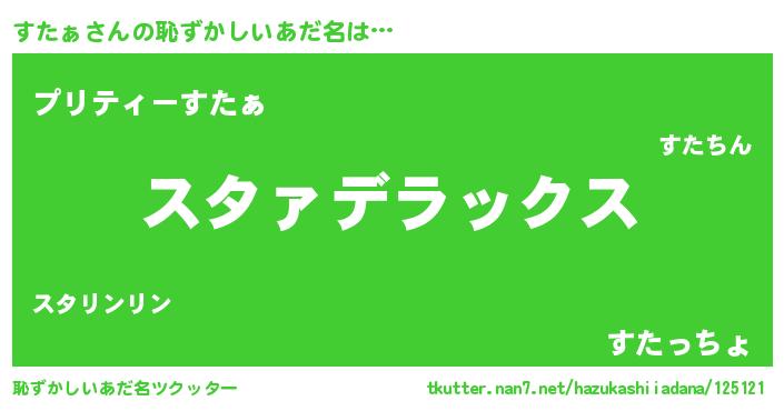 | 男性向けラノベタイトル風あだ名 | 『緋弾のスタァ』『すたぁの憂鬱』 |
