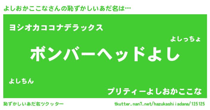 | ヒーロー風カッコイイあだ名 | 『慈愛の使者よしおかここな』 |