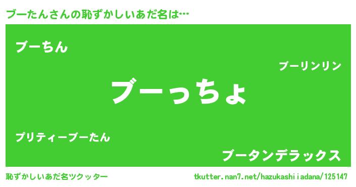| 意味不明あだ名 | 『ブーたんフォーエバー』『自称ブーたん』 |