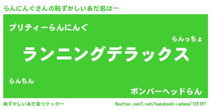 | 女子向けラノベタイトル風あだ名 | 『闇のらんにんぐ』『らんにんぐ恋絵巻』 |