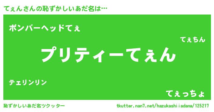 | ヘコむあだ名 | 『てぇにゅー』『豆乳』『てぇん(笑)』 |