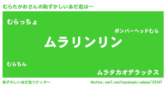 | ヒーロー風カッコイイあだ名 | 『天弓騎士ムラ』『最強戦士ムラタカオ』 |