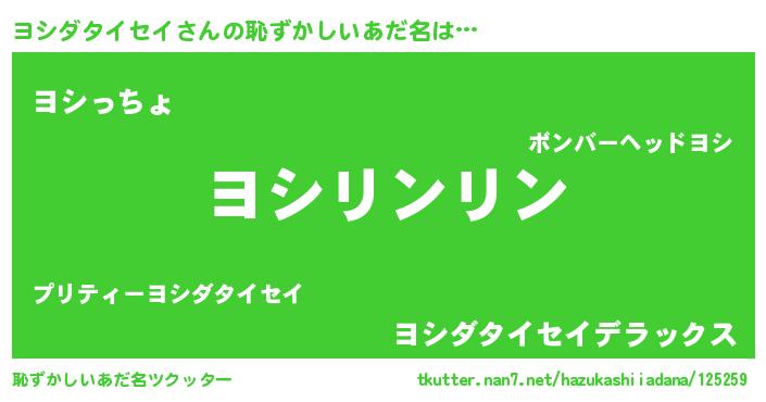 | 男性向けラノベタイトル風あだ名 | 『ヨシダタイセイの嫁は女の子じゃないと思った?』 |