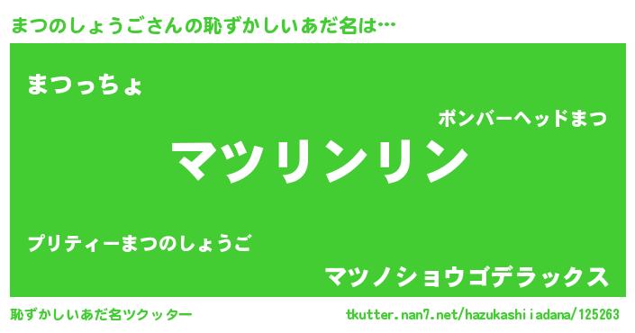 | 男性向けラノベタイトル風あだ名 | 『まつのしょうごの嫁は女の子じゃないと思った?』 |