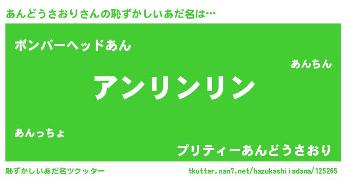 | 意味不明あだ名 | 『とにかく怪しいあんどうさおり』 |