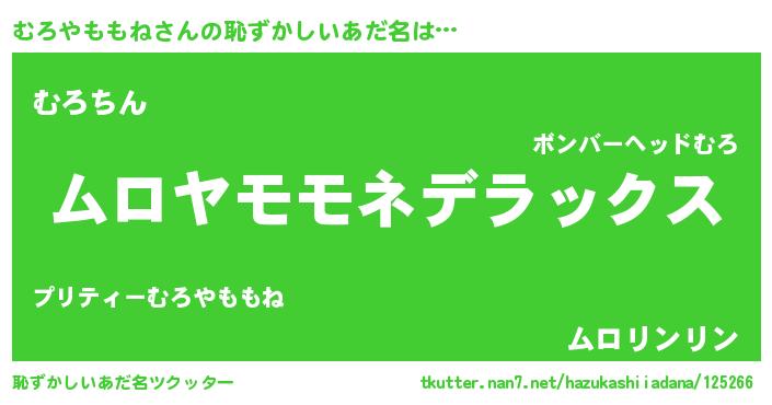 | ヘコむあだ名 | 『むろやももね(震え声)』『むろお』 |