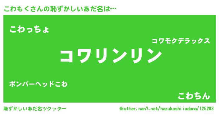 | 男性向けラノベタイトル風あだ名 | 『転生したらこわもくだった件』 |