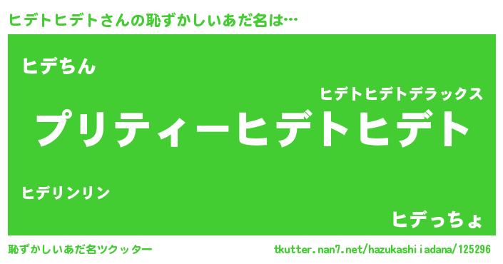 | 女子向けラノベタイトル風あだ名 | 『(仮)ヒデトヒデトのやんごとなき事情』 |