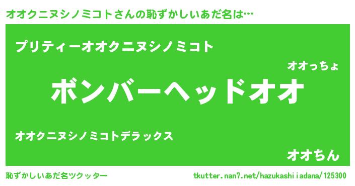 | 男性向けラノベタイトル風あだ名 | 『うちのオオクニヌシノミコトが世界を掌握している!』 |