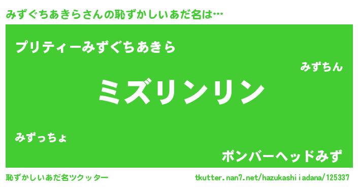 | ポケモン風あだ名 | 『ミーズイ』『ヒミズグチアキラ』 |