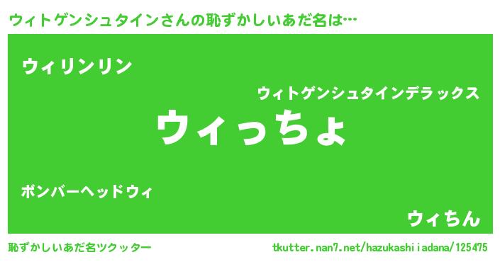 | 欧米人風あだ名 | 『ウィトゲンシュタイン・ステッグマイヤー』 |
