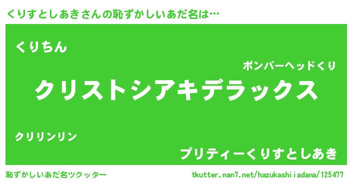 | ヘコむあだ名 | 『くりすとしあき(遠い目)』『くりもー』 |