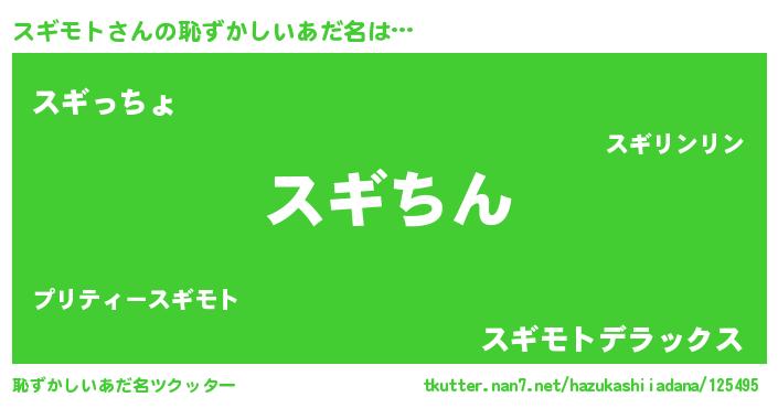 | 意味不明あだ名 | 『永久保存スギモト』『自称スギモト』 |