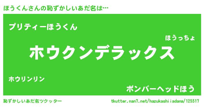| 男性向けラノベタイトル風あだ名 | 『Re:ほうくんから始める異世界生活』 |