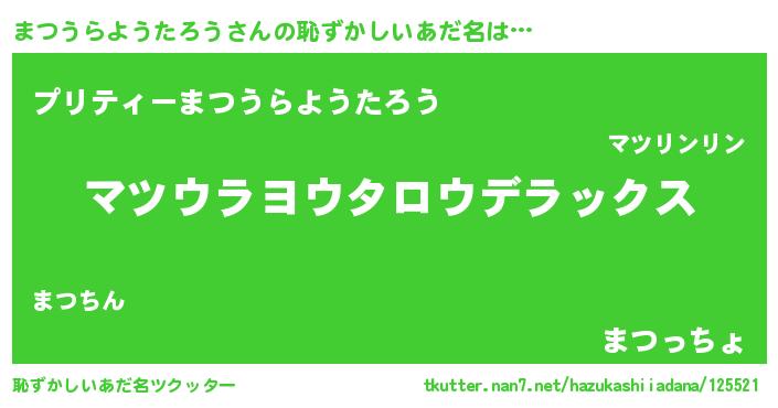 | 男性向けラノベタイトル風あだ名 | 『この素晴らしい世界にまつうらようたろうを!』 |