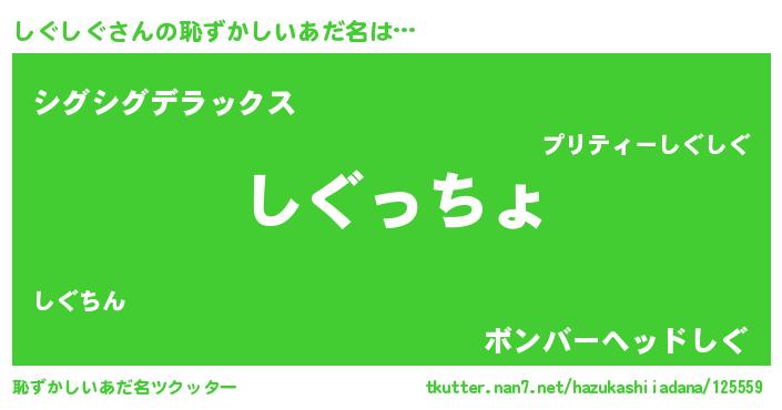 | 男性向けラノベタイトル風あだ名 | 『しぐしぐ~年齢イコール彼女いない歴の魔法使い~』 |