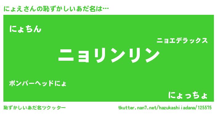 | ヘコむあだ名 | 『にょぷりん』『にょえ(小並感)』 |