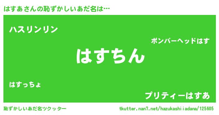 | ヘコむあだ名 | 『はすあ(笑)』『はすを』『つくし』 |