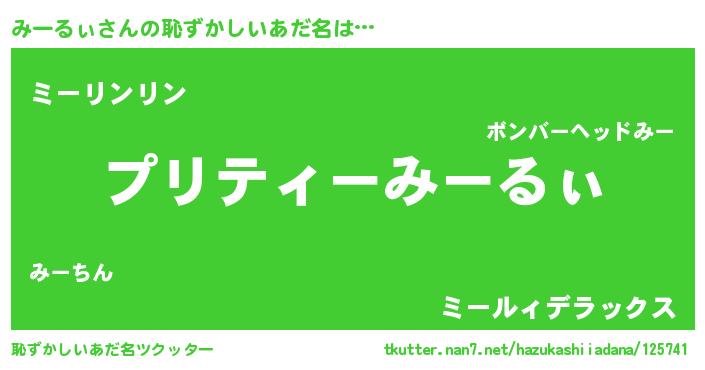 | 意味不明あだ名 | 『なめこ科みーるぃ属』『自称みーるぃ』 |